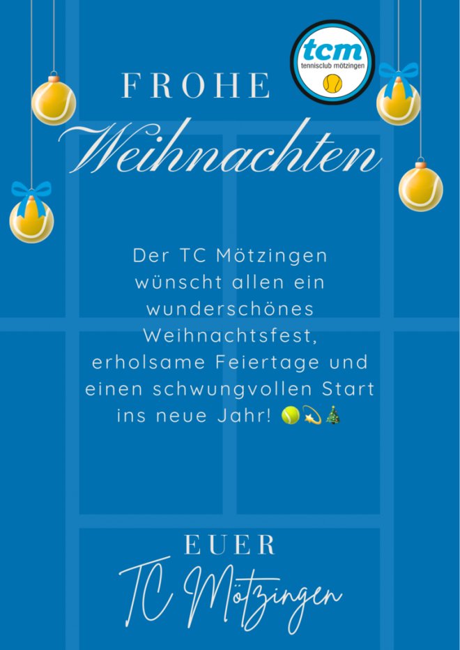 der TC Mötzingen wünscht schöne Feiertage mit den Liebsten, viel Freude und tollen Erinnerungen sowie einen guten Rutsch ins neue Jahr! ✨